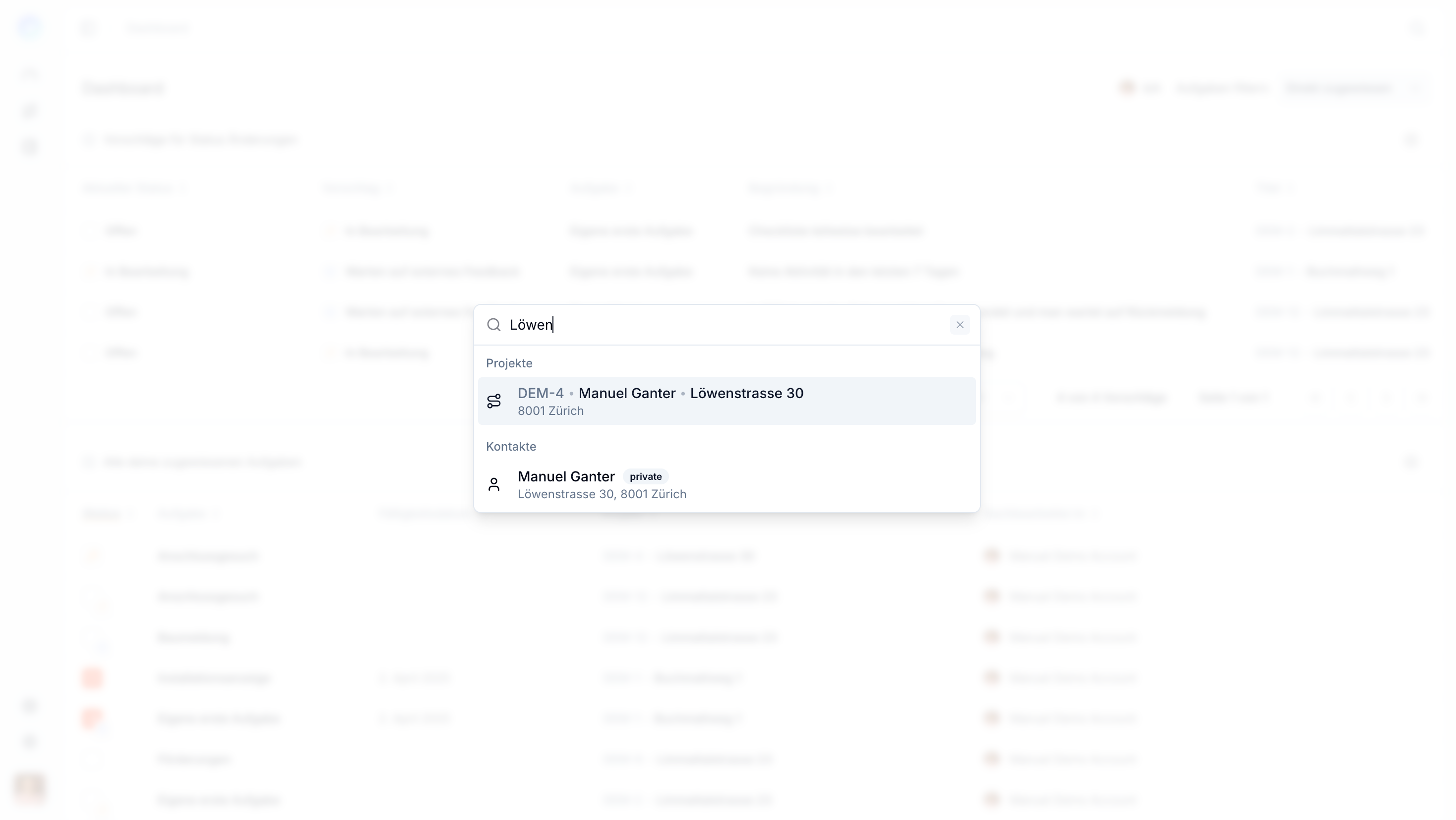Globale Suche für Projekte und Kontakte