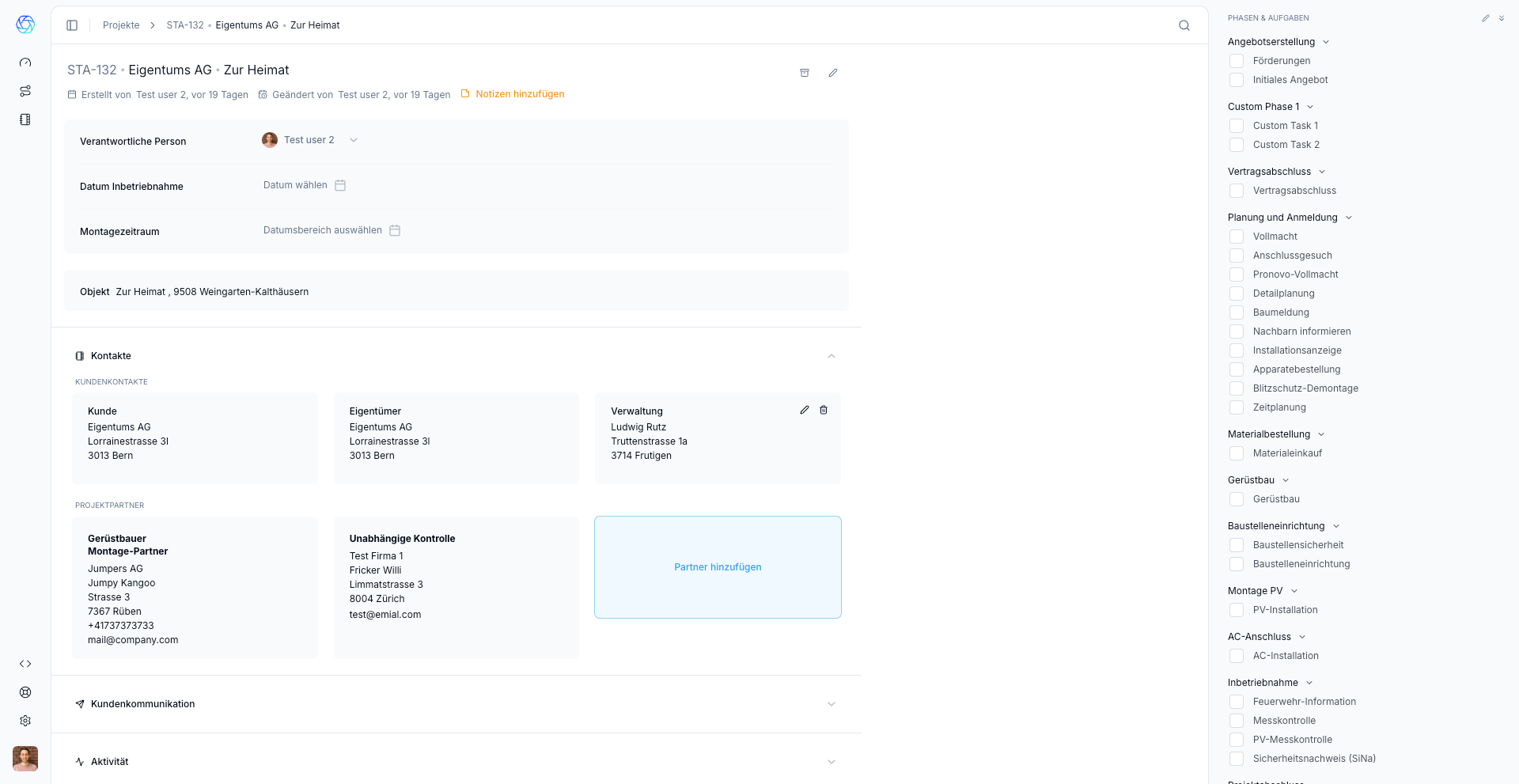 Neu könnt ihr nun in Solarstream jeder Zeit und für jedes Projekt einen Kunden, Eigentümer und Verwaltungskontakt hinterlegen. Das geht ganz einfach un direkt aus der Projekt Detail Seite