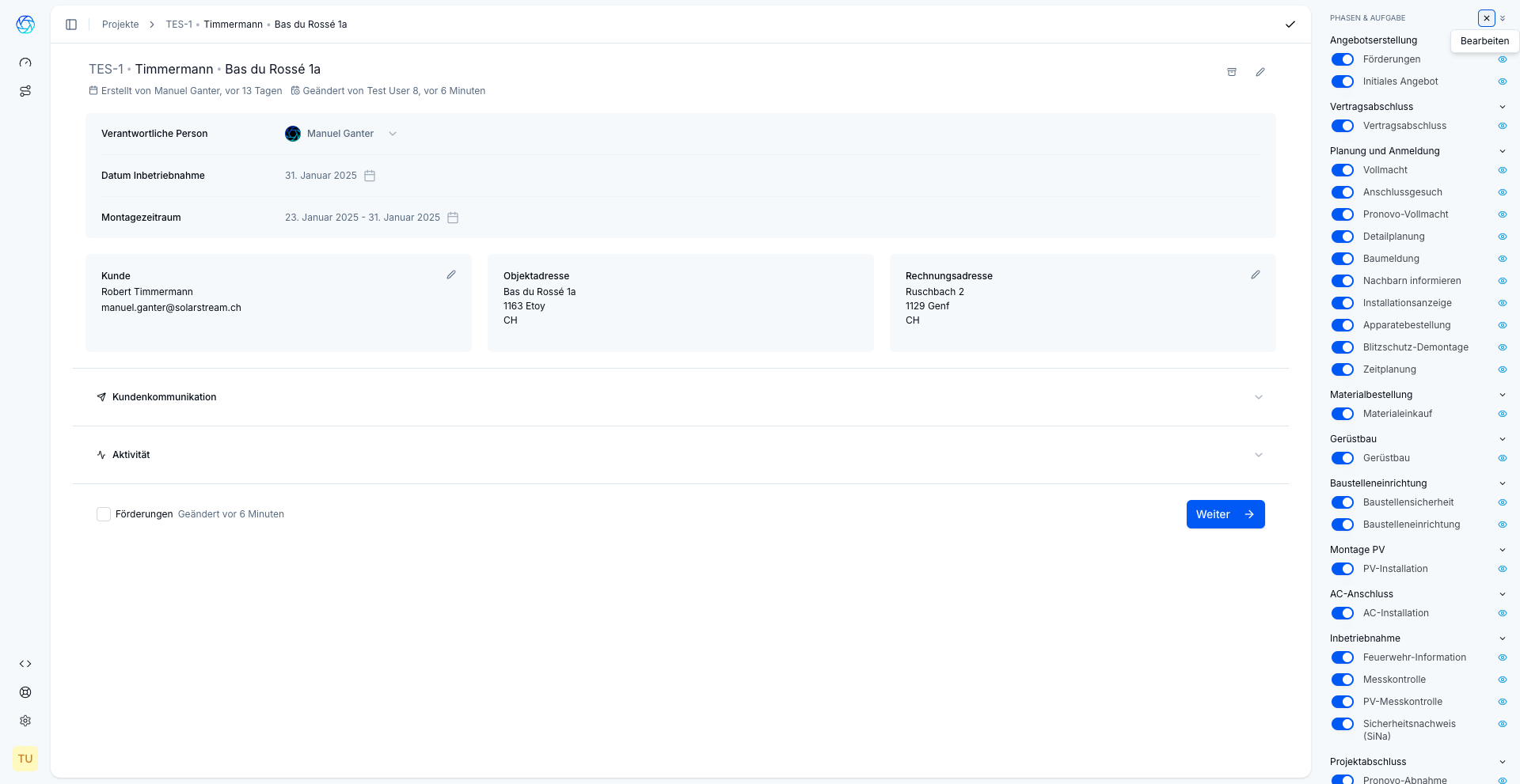 Es erlaubt euch auch Teile des Installationsprozess in Solarstream zu tracken, ohne das der Kunde dies sieht (egal ob beispielsweise der Verkauf oder nach Abschluss des Projekts noch einige interne Aufgaben)